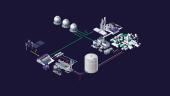 Ilustração da solução integrada de eletrolisador e bomba de calor mostrando processos e componentes da integração.